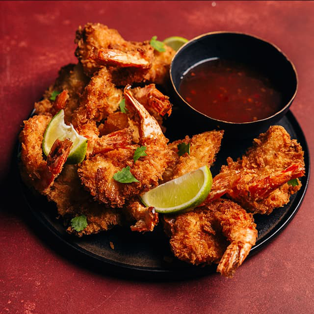 A ropogós, kókuszos-panko morzsában sült garnélákok Shan’shi édes chili szósszal tálalva tökéletes ázsiai partyfalatok vagy különleges előétel bármilyen alkalomra.